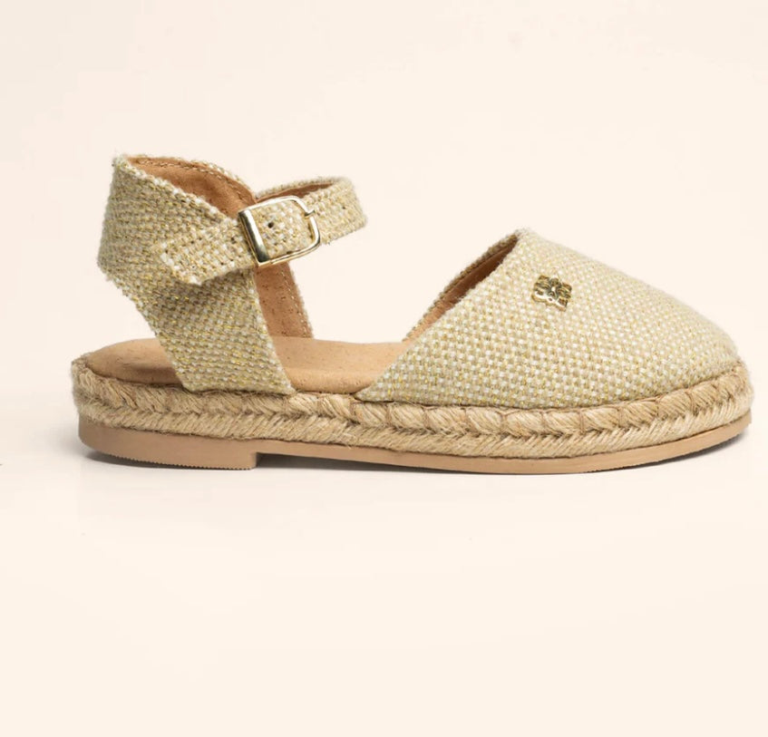 Tus peques lucirán muy coquetas. Corte textil, forro de piel, plantilla de cuero y suela forrada de yute natural con piso sintético. Solo números enteros.
